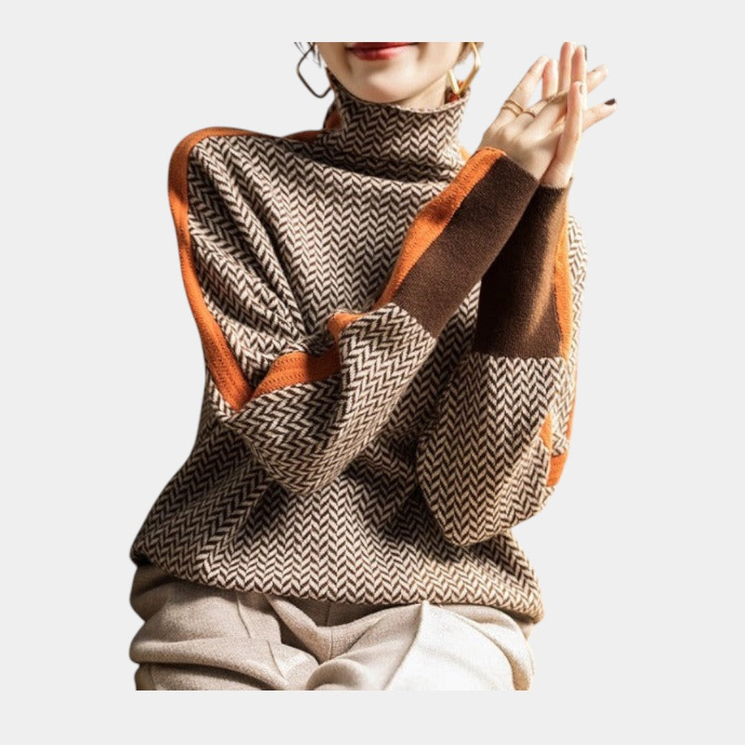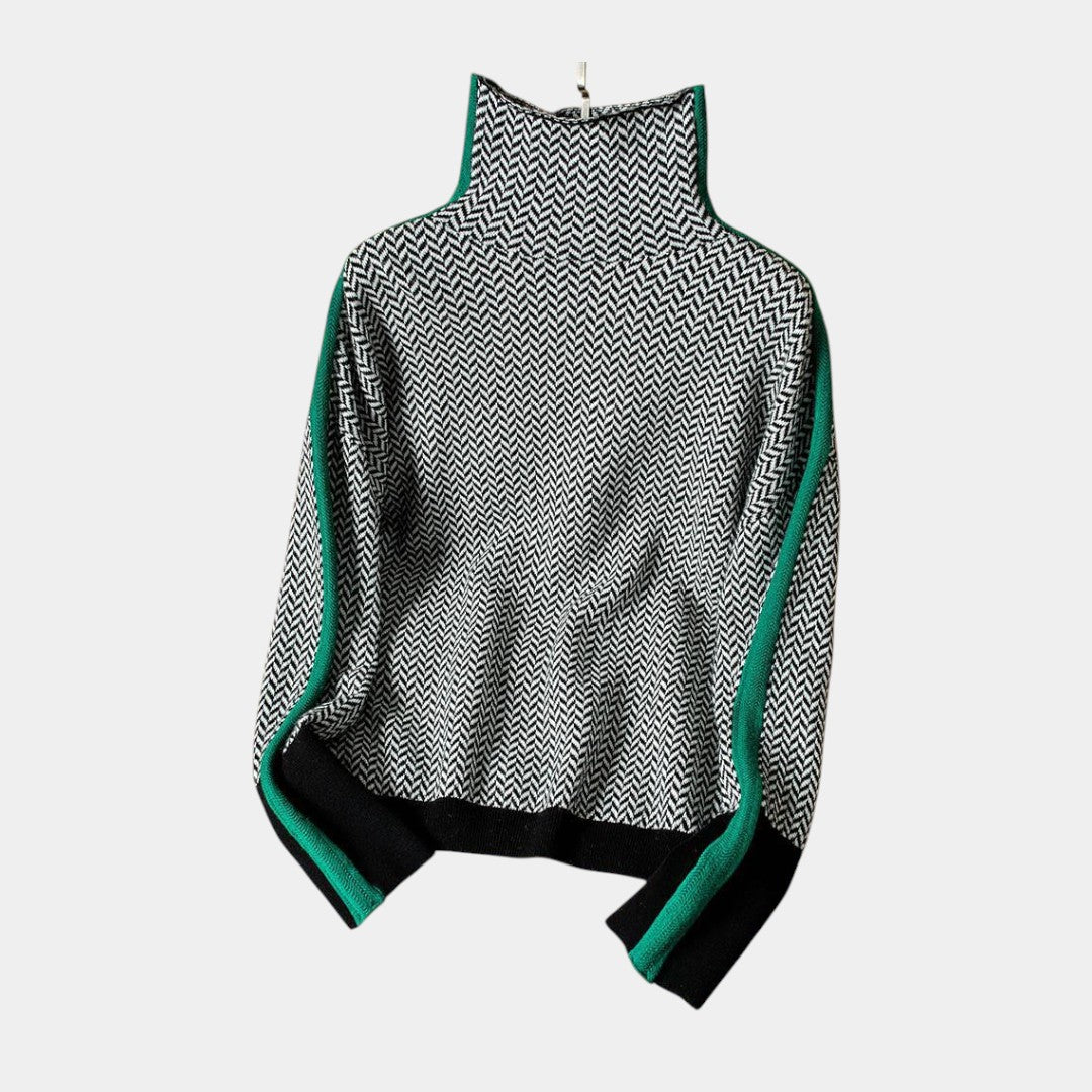 Descubre la mezcla perfecta de comodidad y elegancia expresiva con Inés | Jersey de cuello alto con rayas en contraste — una prenda que transforma cualquier look.